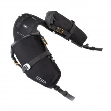 - Rackless rugged saddlebag designed to carry the essentials on aggressive off-road rides where keeping your gear firmly in place while at speed is essential